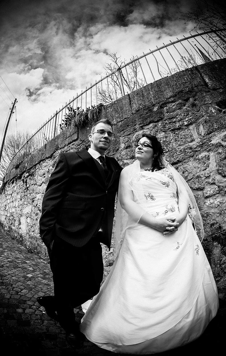 - Hochzeitspaar beim Fotoshooting durchgeführt vom Hochzeitsfotografen