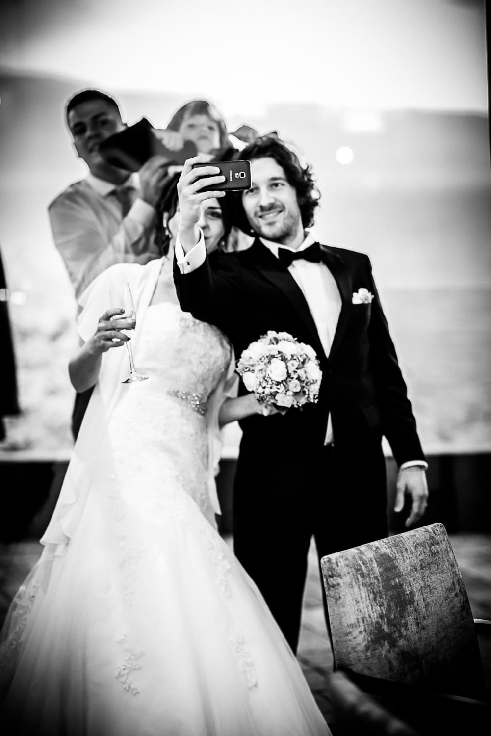 - Hochzeitsfotograf fotografiert Selfie des Brautpaars